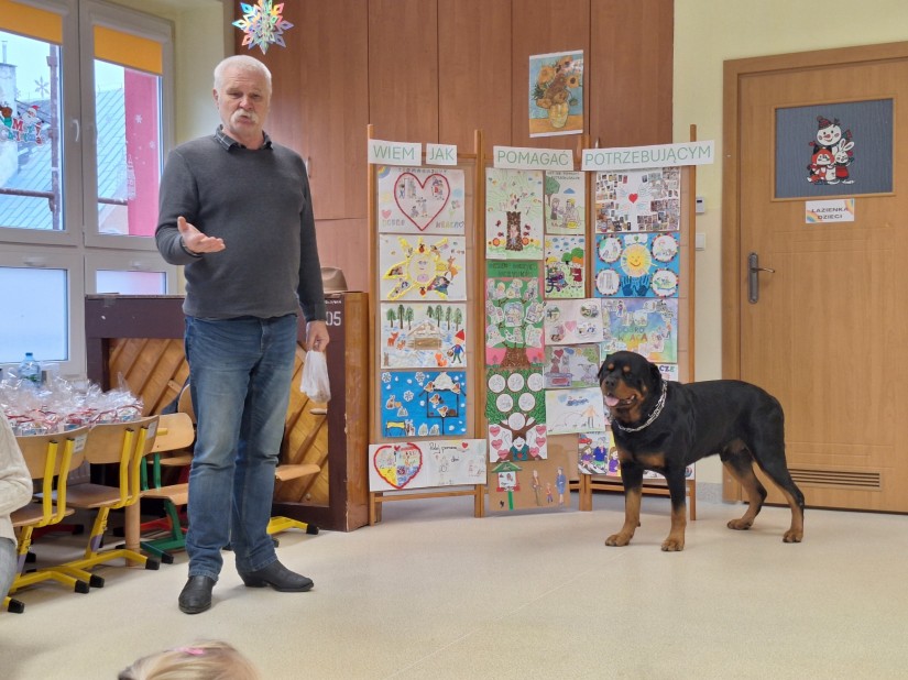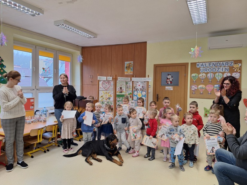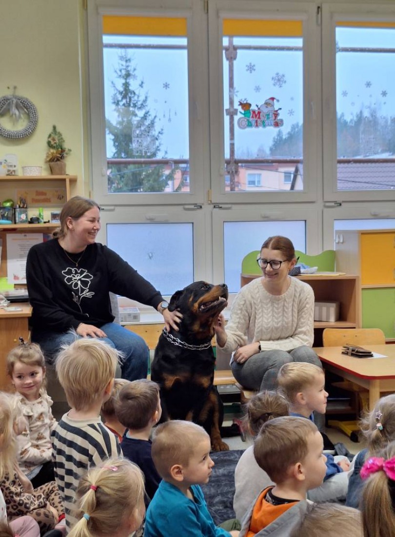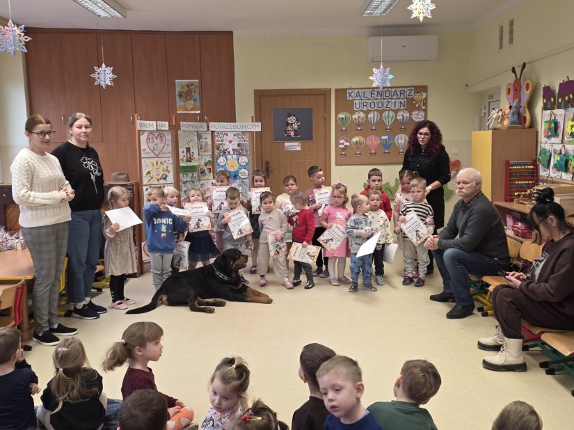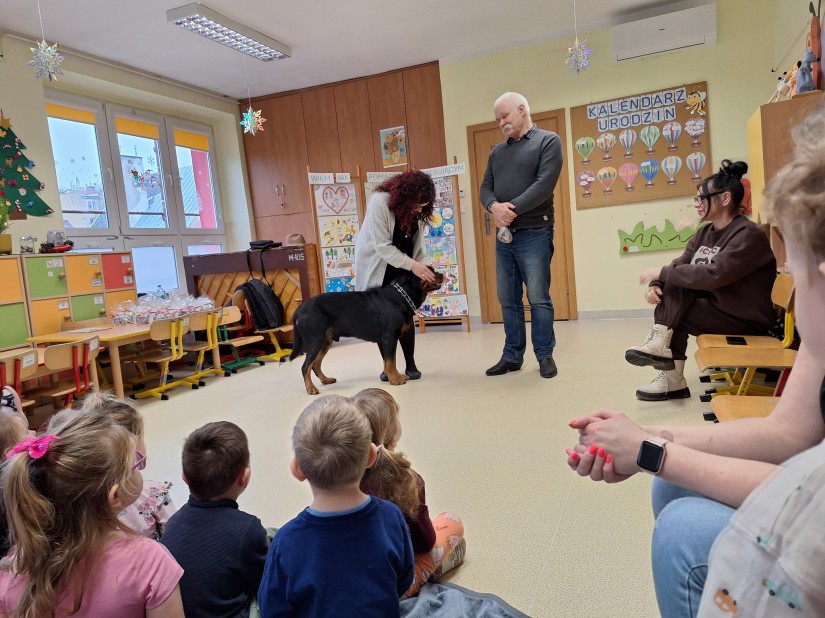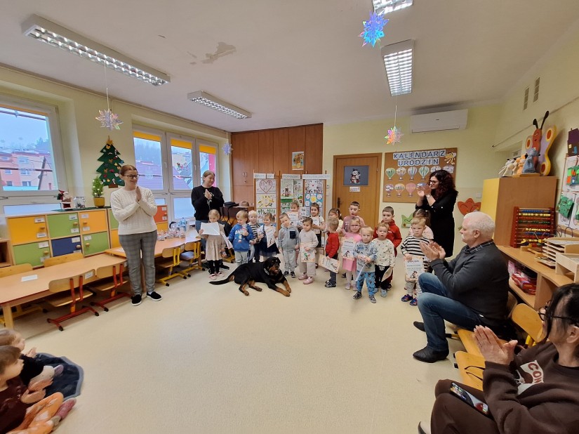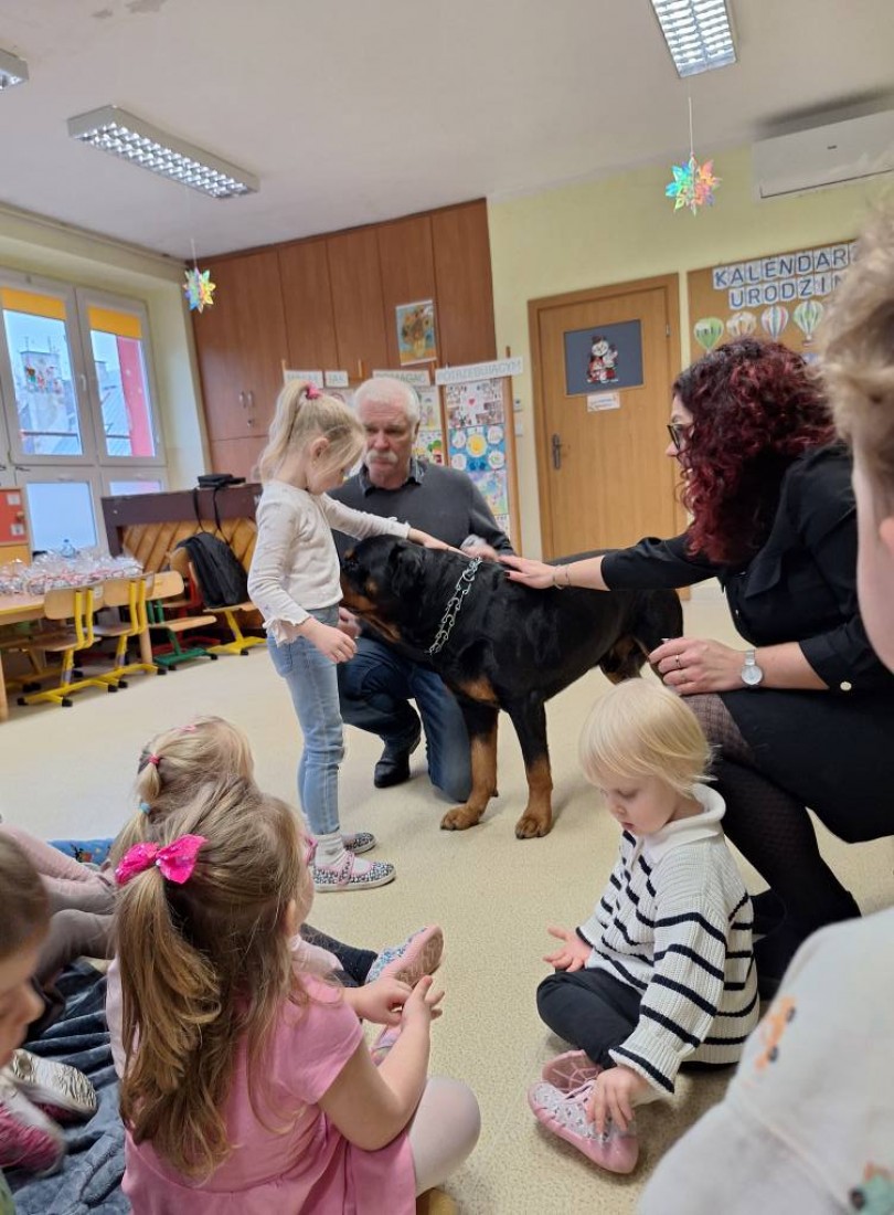 Serdeczne podziękowania kierujemy do Pana Jurka, Pani Barbary oraz ukochanego Barego za poświęcony czas, wspaniałą atmosferę i możliwość bliskiego spotkania z czworonożnym przyjacielem. Dzięki Państwa obecności dzieci mogły przeżyć coś wyjątkowego i nauczyć się ważnych zasad dotyczących kontaktu ze zwierzętami. Na zakończenie dziękujemy również dzieciom, rodzicom i pracownikom przedszkola za udział w zbiórce karmy dla schroniska.