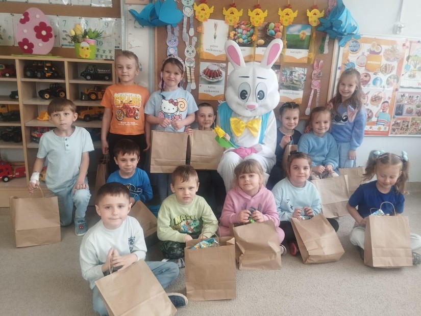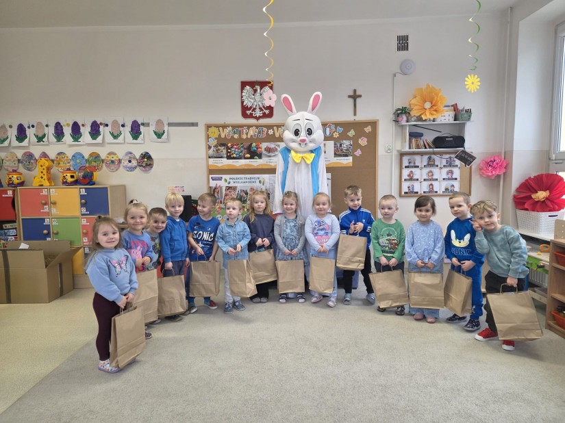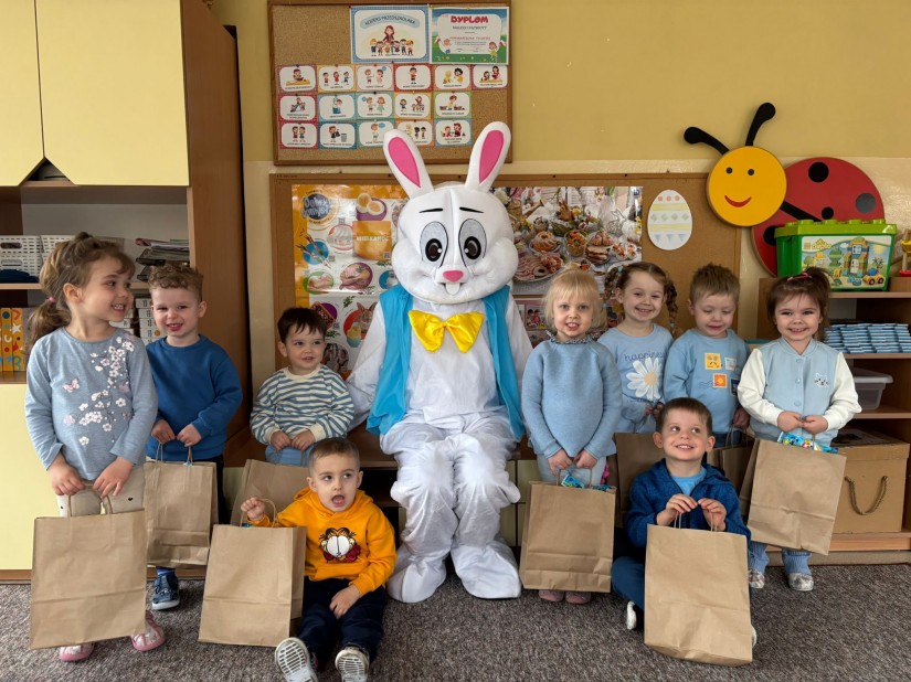Dnia 01.04.2026r. nasze przedszkole odwiedził wyjątkowy gość – Zajączek Wielkanocny! Dzieci z ogromną radością uczestniczyły w spotkaniu. Zaśpiewały wesołe, świąteczne piosenki, wprowadzając wszystkich w wielkanocny nastrój. Największą niespodzianką było wręczenie prezentów – Zajączek obdarował każde dziecko drobnym upominkiem To był dzień pełen uśmiechu, radości i wiosennej atmosfery Dziękujemy za wspólnie spędzony czas!